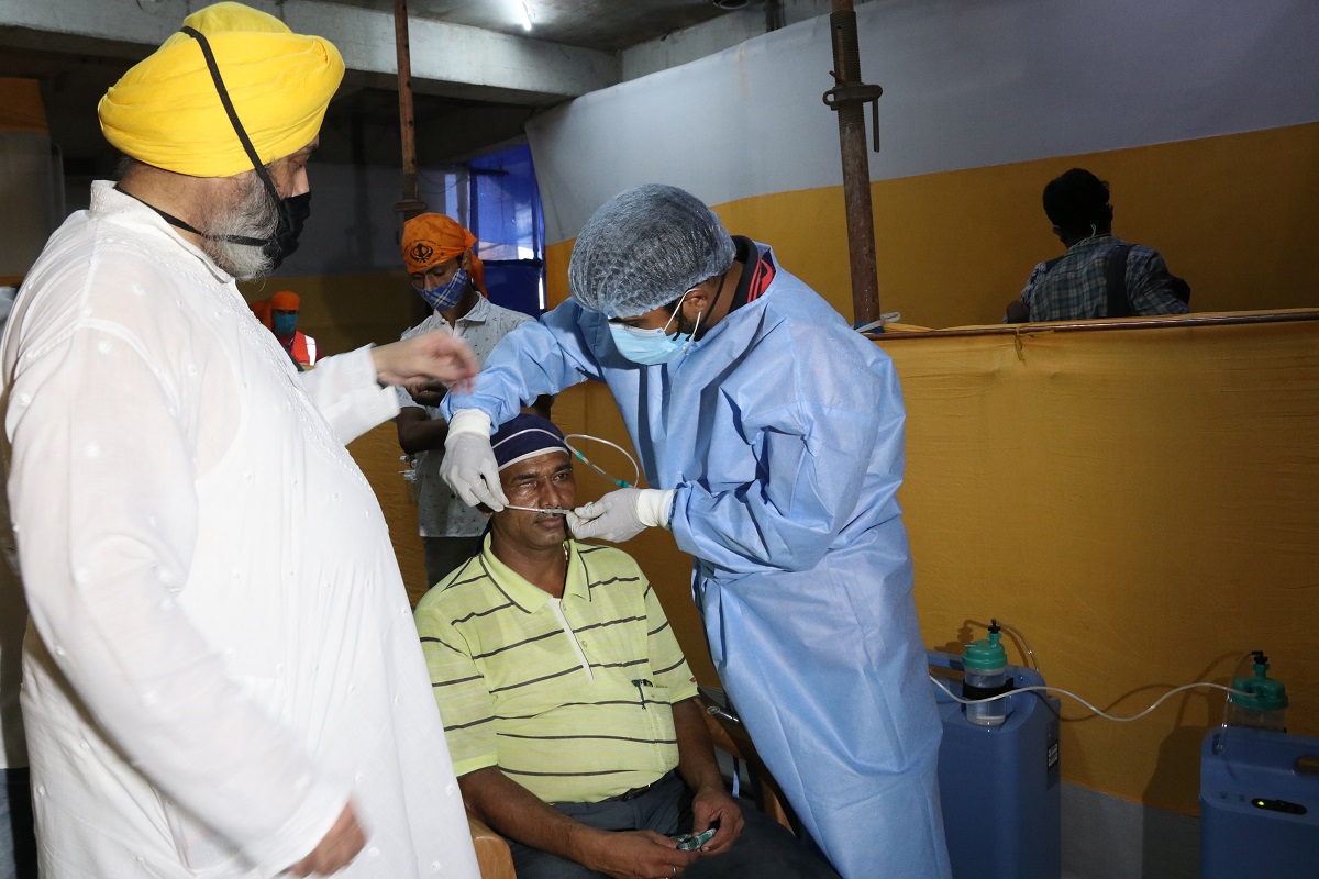 The doors of our Gurdwara are open to everyone. Many patients come when their SPO2 level has fallen considerably. Our IHA Foundation volunteers greet them with a smile and assist them along with the medical team in providing them with Oxygen, and if medicines are prescribed by the Doctor, and the patient is financially weak, IHA Foundation arranges for their medicine also