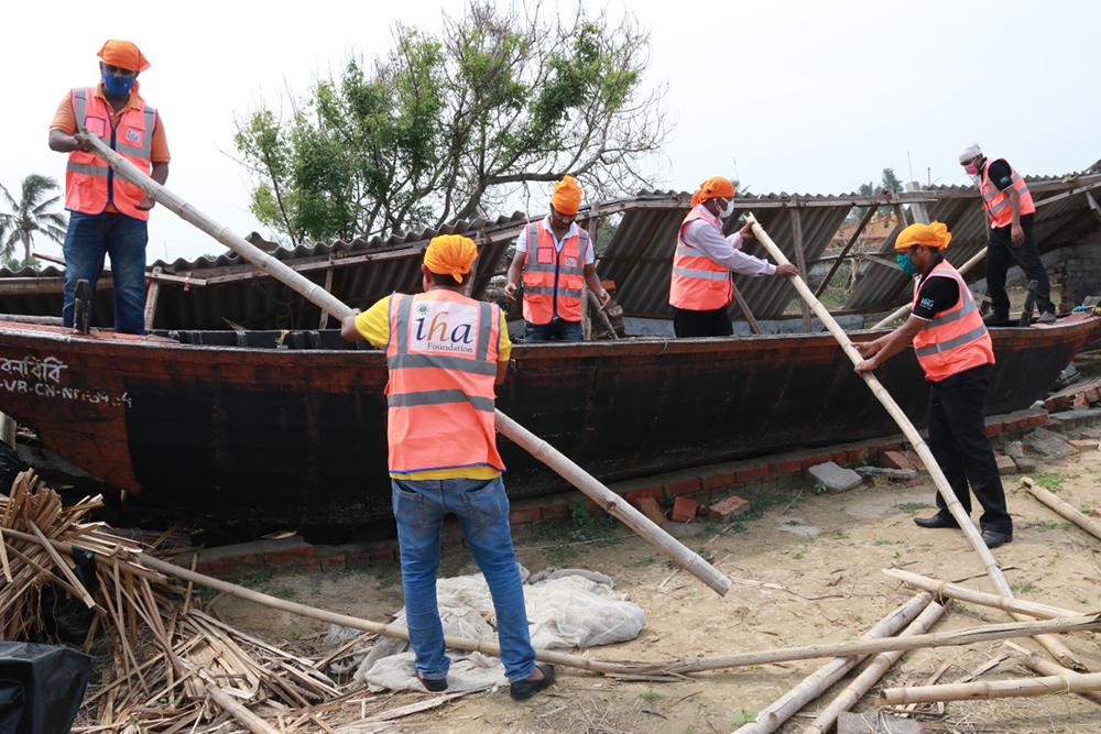 “People preferred to go back to their homes instead of staying in the Safe Houses and Shelters, even if it meant erecting two bamboo poles, covering them with plastic and sleeping there in the wreckage. It helps them keep an eye on their livestock and few belongings that is left. But many have been forced to stay on in relief centers waiting for resources to rebuild back their lives. Still Boats are perched over houses and people are still feeling helpless as to what can be done with dwindling limited resources, with no sources of income after their agricultural land has been washed away and with no avenues to work with the second wave of Covid19.”, said Satnam Singh Ahluwalia, Chairman IHA Foundation.