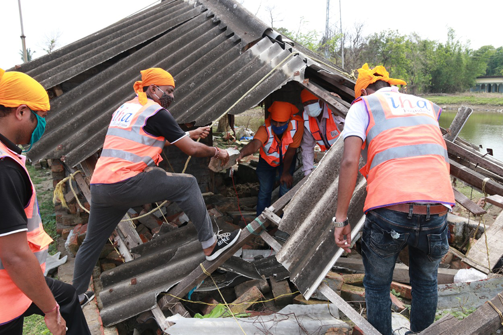 Though the cyclone “Yaas” didn’t have the same magnitude as cyclone “Amphan”, but it had wreaked large scale damages to human habitats and farmlands. The storm surge triggered by the cyclone, which coincided with the perigee spring tide, caused an extraordinary rise in the water level. Thousands of people had lost their home, their livelihood and were in dire need of food, safe drinking water and shelter. IHA Foundation under the leadership of its Chairman Satnam Singh Ahluwalia immediately formed small volunteer groups to combat the situation. At the very initial stage IHA Foundation provided them with dry food and safe potable water. The river embankment rebuilding works had already been started.