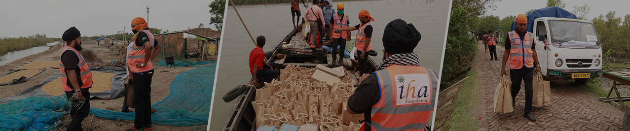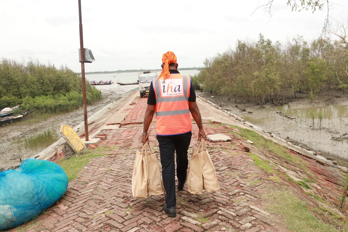 Across the Bengal coastline, the scale of devastation was hugely evident. Reports of hutments washed away, roads broken, river and seabeds eroded and hundreds of village still under water, with some persons still untraceable. IHA Foundation immediately dispatched his team of volunteers to Sunderbans with relief material like tarpaulin, ropes, clothes, dry ration like muri, gur, chanachur, chira etc along with Ration kits consisting of rice, dal, oil, atta, tea, milk powder etc.