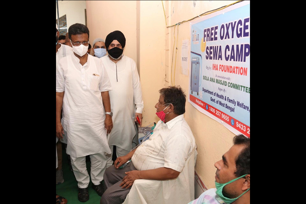 The Second Oxygen Sewa Camp was inaugurated at Sola Ana Masjid (11, Kabi Mohammed Iqbal Rd Ekbalpur, Khidirpur, Kolkata – 700023) at 01:30 PM by Jb Firhad Hakim (Chairman , Board of Administrators, Minister Govt of West Bengal), Dr.Satnam Singh Ahluwalia (Chairman IHA Foundation), Moulana Shafique Qasmi (Imam of Nakhoda Masjid), Moulana Qari Fazlur Rahman (Imam e Eidaan), Nizamuddin Shams(Coordinator Ward 78), Shafkat Ali (President, Sola Aana Masjid Comm) Moulana Sk Md Hamid Hossain (Imam of Sola Aana Masjid), Jb Ejaz Ahmed (General Secretary, Sola Aana Masjid Comm) and others were present.